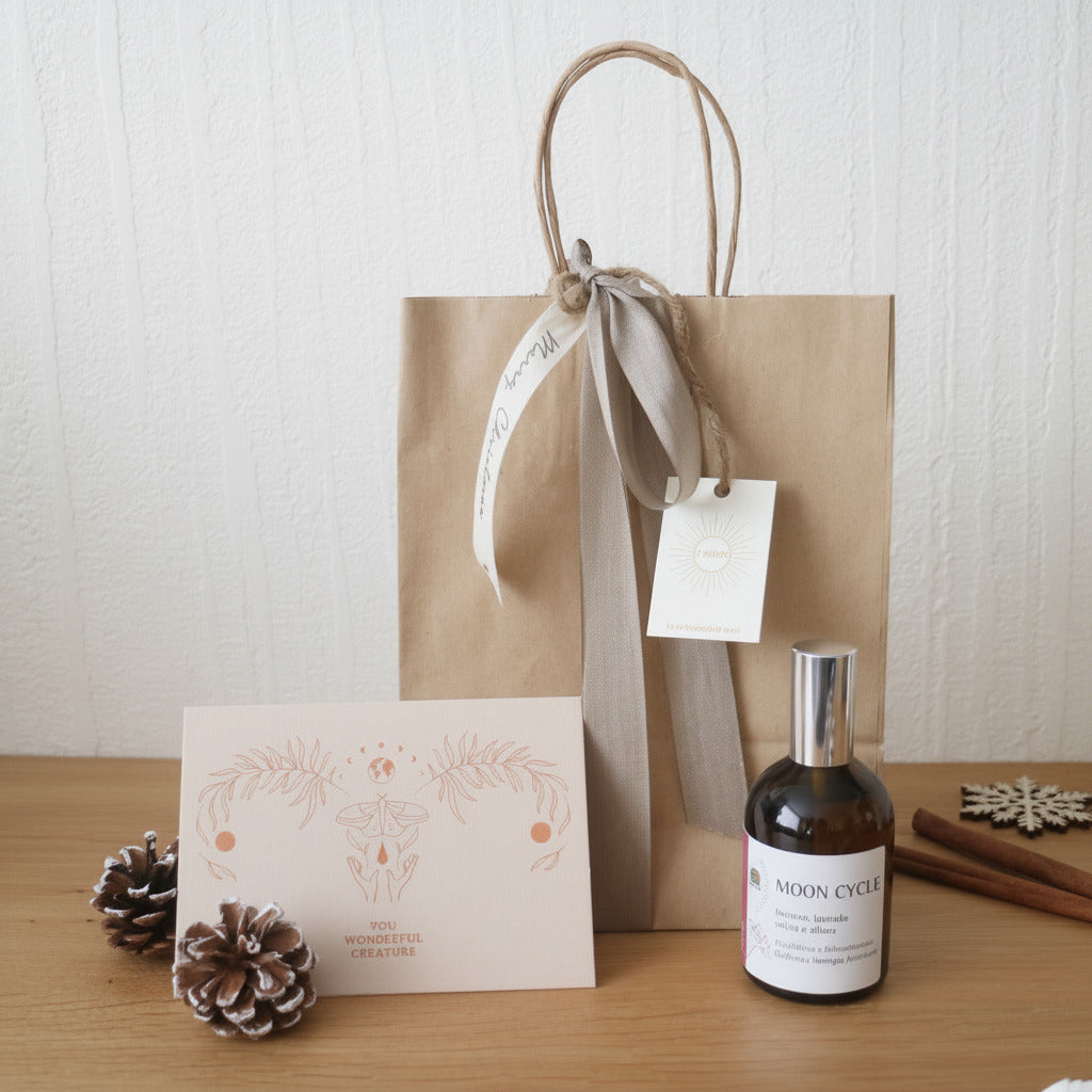 Un kit regalo pensato per celebrare il ciclo femminile, il ritorno al proprio centro e la riscoperta della propria luce.