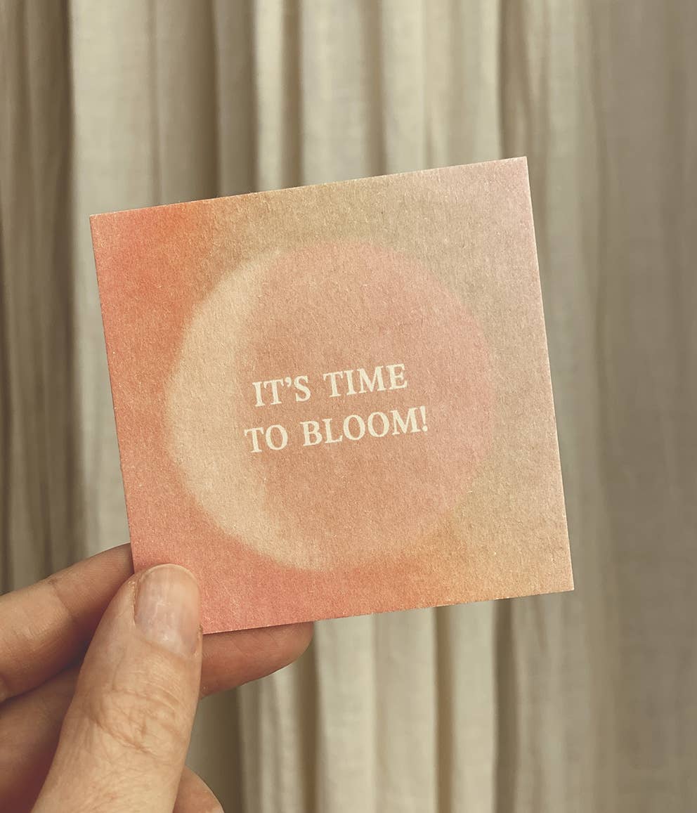 Questa mini carta illustrata nel formato 7,5 x 7,5 cm porta un messaggio delicato e potente: È ora di fiorire. Un invito a crescere, aprirsi e scegliere il proprio tempo con gentilezza. È perfetta come piccolo promemoria quotidiano, come carta di affermazione da tenere sulla scrivania, oppure come dettaglio luminoso da aggiungere al tuo vision board. Puoi anche regalarla come gesto attento a una persona che ami.