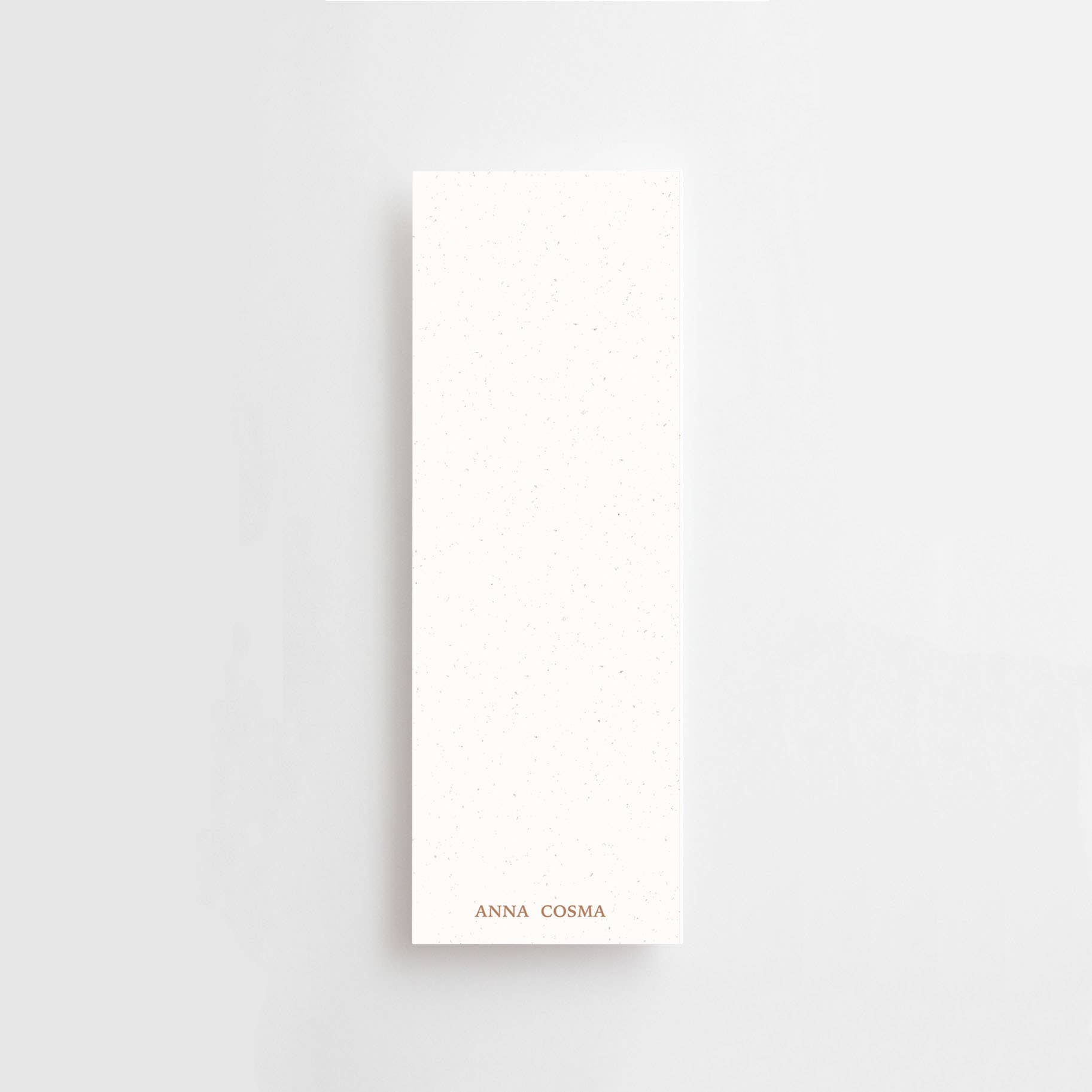 Il formato 14,8 x 5,2 cm lo rende pratico e piacevole da usare, mentre la carta riciclata da 300 g, realizzata in carta straccia non sbiancata con certificazione Ecolabel/Blue Angel, offre una texture naturale e materica. Le fibre visibili e le piccole irregolarità sono parte del suo fascino, un tratto distintivo dei materiali non trattati e più consapevoli.
