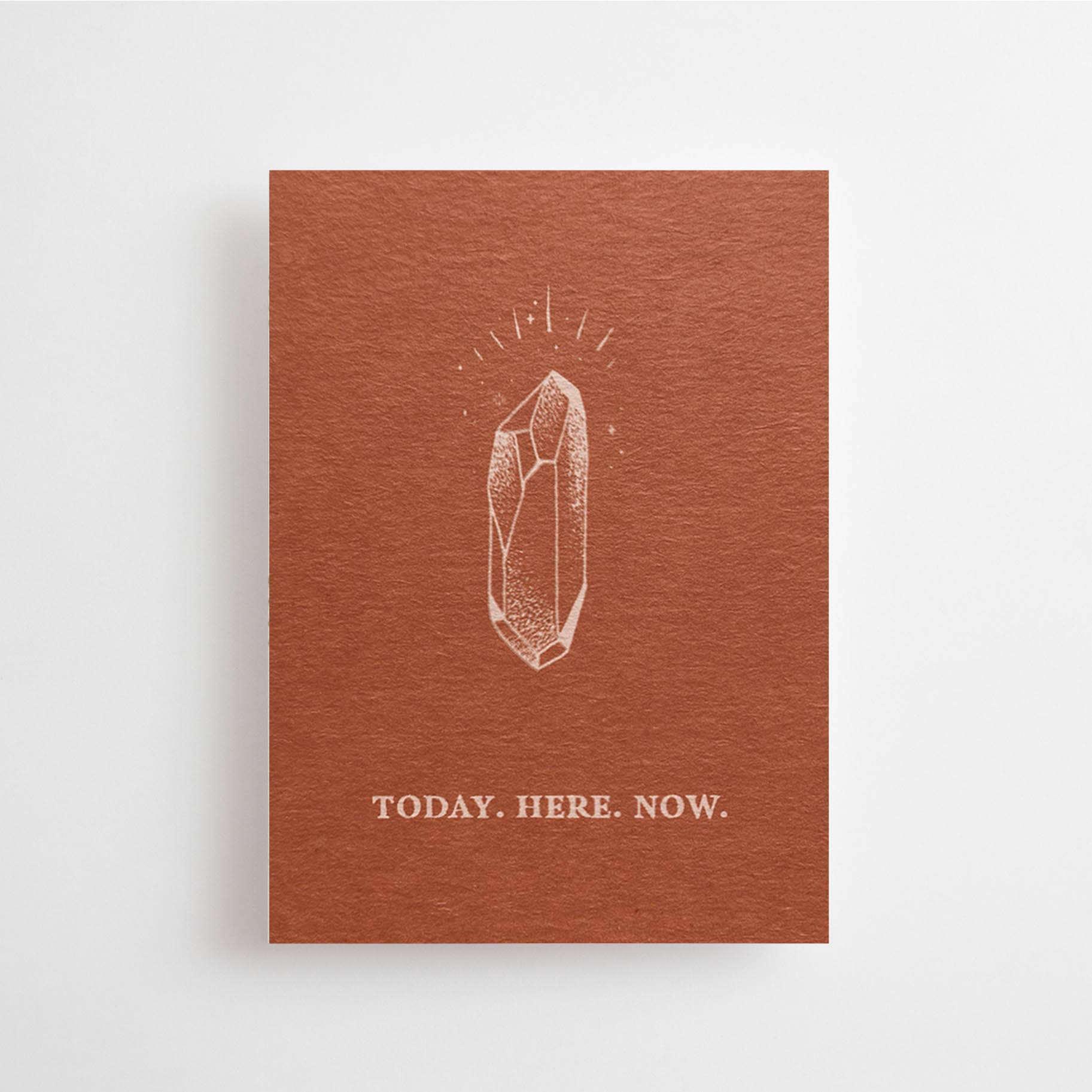 Questa mini card nel formato DIN A7 (7,4 x 10,5 cm) richiama alla presenza e alla semplicità dell’istante: Today. Here. Now. Un messaggio essenziale che invita a tornare al momento presente, perfetta da tenere sulla scrivania, inserire nel tuo diario o regalare come piccolo pensiero consapevole.
